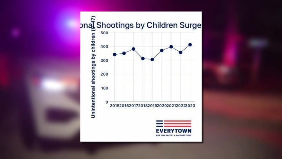 The nonprofit group ‘Everytown’ tracks accidental shootings involving children, which skyrocketed to more than 400 in 2023.