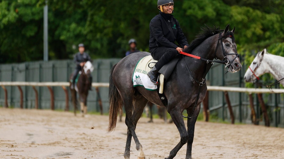 Barber Road walks off the track after a morning workout prior to the 154th running of the Belmont Stakes at Belmont Park on June 9, 2022, in Elmont, New York. (Sarah Stier/Getty Images)