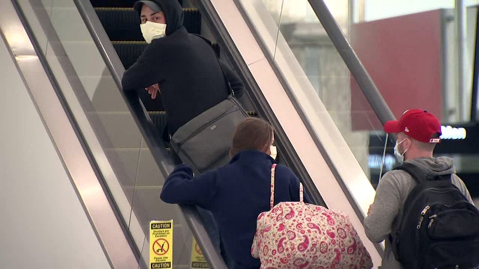 Travelers with masks seen at Tampa International Airport