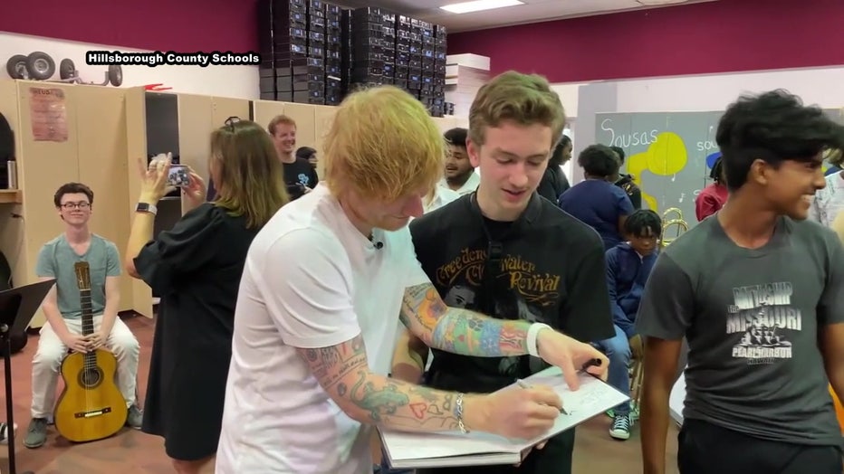 TAMPA, Fla. - Band students at Middleton High School are still reeling from a whirlwind of a weekend after music icon Ed Sheeran surprised the class Friday and gave away tickets to his sold-out show at Raymond James Stadium Saturday night.