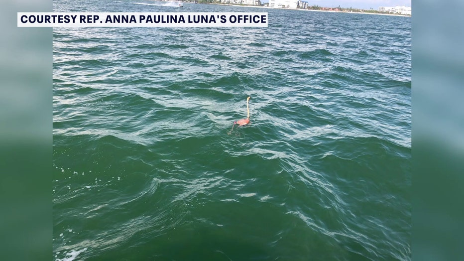 "She was pretty far off of the water," Madeira Beach Commissioner Anne-Marie Brooks said. "We just thought that was kind of odd to see a flamingo swimming so far out."