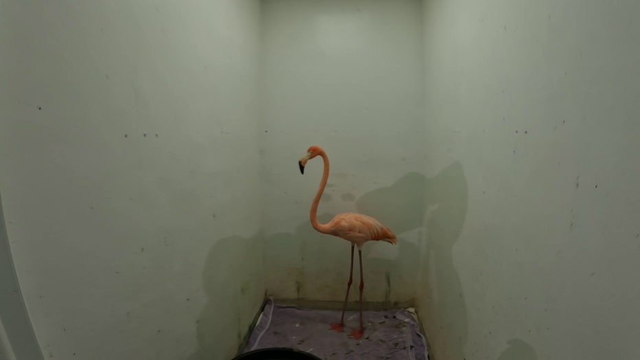 "Our plan, hopefully by the end of this week is to rejoin this flamingo with one of the flocks in our area," Edwards said. "If for some reason the ones aren't local anymore, we will drive, you know, either to our south where there are other flamingos just to give them the best possible chance. They are a very social species, so the best possible chance to reintegrate and get where they need to go will be with others."