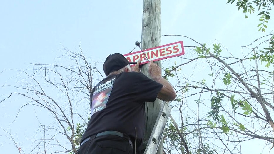 Happiness signs all over St. Pete and Gulfport come with a story: changing the world with a simple idea. FOX 13's Walter Allen talks with the man behind the mission.