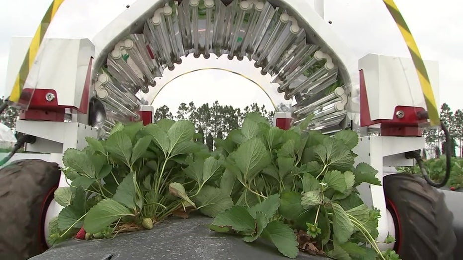 WIMAUMA, Fla. - Strawberry farmers may have a new kind of farmhand working in the fields, a robot that uses ultraviolet light to kill certain kinds of fungus and mold.