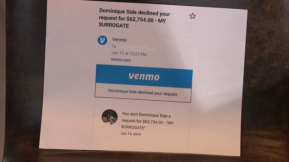 Kelly Palladino showed FOX 13 a Venmo request she made to Side for the money they'd given her. It was denied.