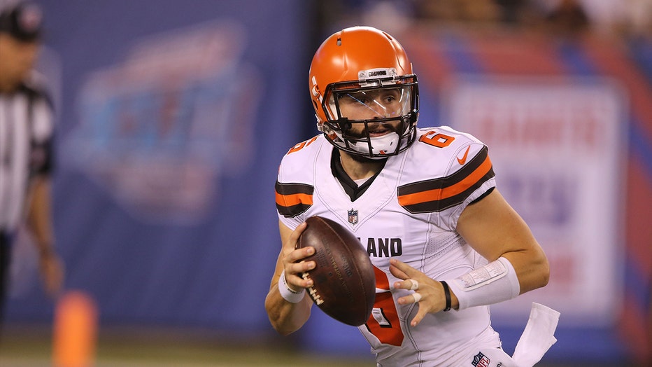 Baker Mayfield #6 of the Cleveland Browns in action against the New York Giants during their preseason game on August 9,2018 at MetLife Stadium in East Rutherford, New Jersey. (Photo by Al Pereira/Getty Images)