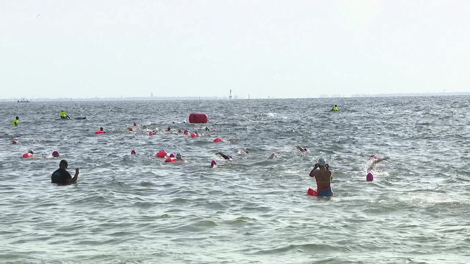 ST. PETERSBURG, Fla - 11-year old Emmersan Grieco-Routh, who often goes by Emmie, was one of dozens of swimmers who suited up and made a splash to fight cancer on Saturday morning at the 14th annual 'Swim Across America' open water swim in St. Pete.