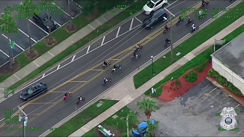 TAMPA - There was chaos on two wheels Wednesday night as Tampa Police say a massive group of riders—on bicycles, dirt bikes, e-bikes, and scooters—took over streets in South Tampa, weaving through traffic, running red lights, riding against the flow of cars, and blocking intersections.