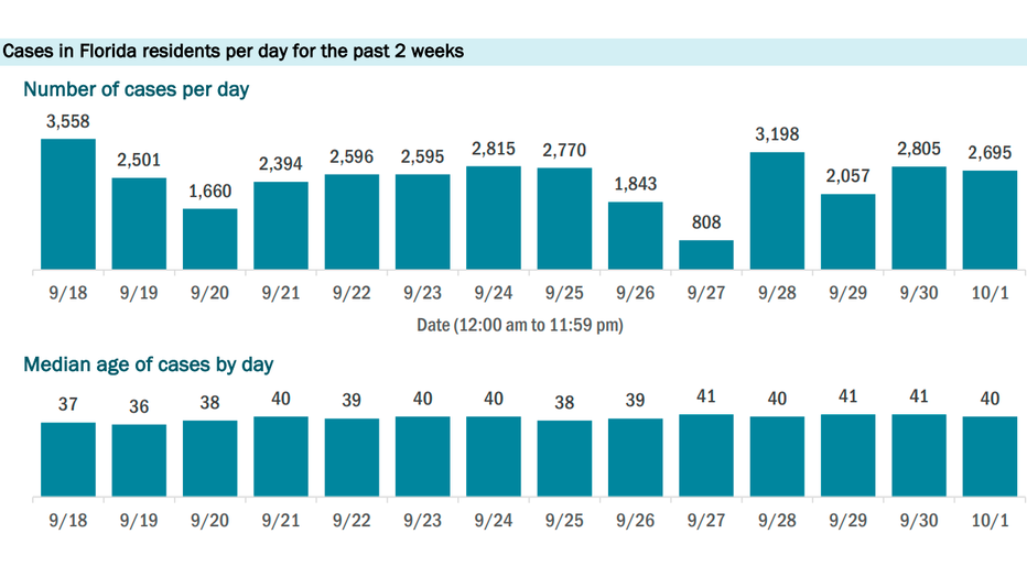 TAMPA, Fla. - The Florida Department of Health says the number of known cases of COVID-19 in the state rose by 2,660 Friday. According to the state's daily update, the total number of cases in Florida is now 711,804.