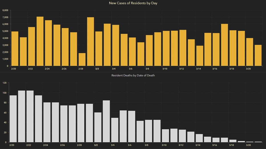 Editor's note: The number of new cases and deaths reported each day does not necessarily reflect the day that the case was confirmed. The state says some private testing labs dump large batches of test results which include cases from previous days, and data can take days or weeks to validate. Stats for today and previous days will likely change in the future as the state reviews more cases and updates retroactive data.