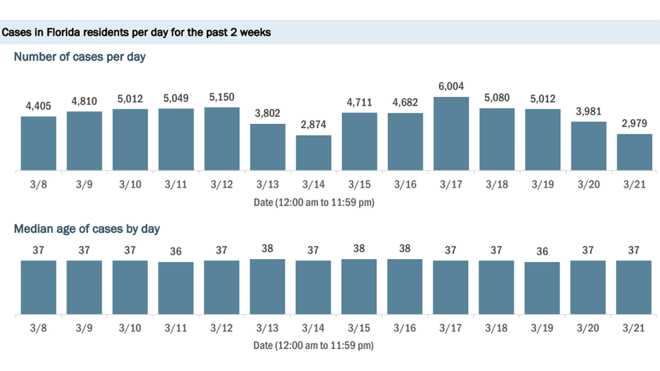 The number of Florida resident deaths has reached 32,779, an increase of 37 since Sunday's update. In addition, a total of 629 non-Floridians have died in the state.