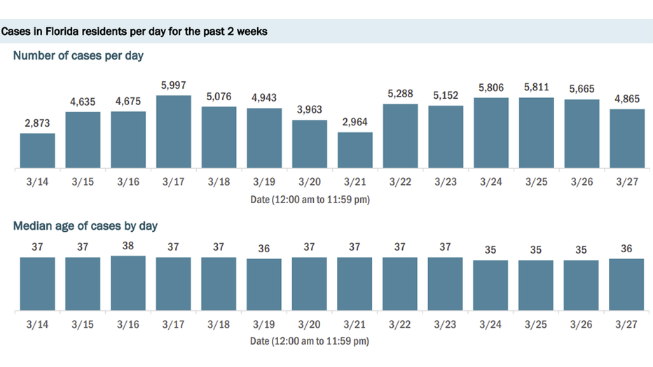 TAMPA, Fla. - The Florida Department of Health says the number of known cases of COVID-19 in the state rose by 4,943 Sunday. According to the state's daily update, the total number of cases in Florida is now 2,044,005.