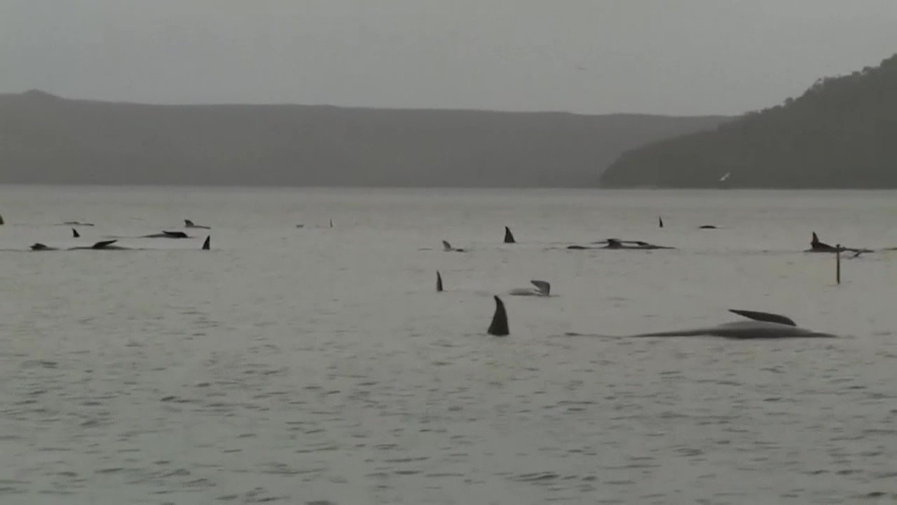 Initial attempts to save the surviving animals began Monday when 270 whales were found marooned on a beach and two sand bars near the small coastal town of Strahan.