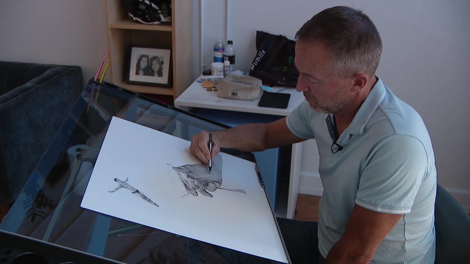 "They have to get close up, because they almost don't believe it's a pencil drawing," Brechwald said. "A lot of times, people are curious as to what takes longer and why did this one take you like 90 hours versus this one that took you only 30 hours, and so it allows me to kind of talk about the process and what goes into creating a photorealistic pencil drawing. It's a great way to start out a conversation."