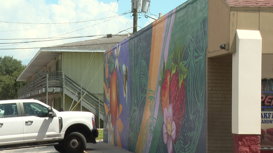 LEALMAN, Fla. - It took Ashley Cassens about two weeks to transform a blank wall on the side of 54th Avenue Deli Mart in Lealman into a vibrant mural.