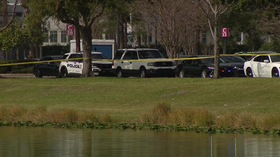 TAMPA, Fla. - Tampa police are investigating after they say a body was pulled from a retention pond near International Plaza on Monday morning.
