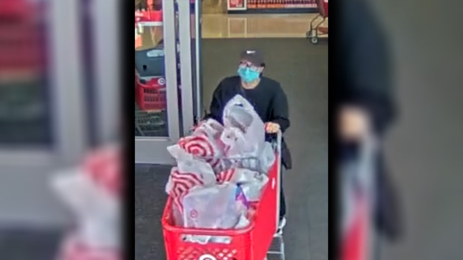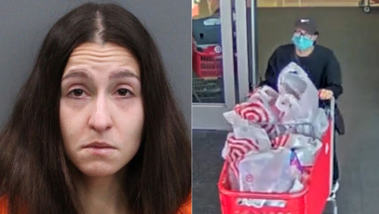 Deputies said Slater is accused of stealing a 94-year-old patient's wallet and using the victim's credit cards to rack up more than $500 in purchases that same day. HCSO released a photo from security footage, showing Slater walking out with a full Target shopping cart.