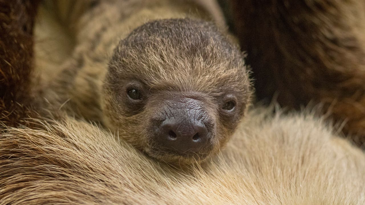 The zoo says the tiny Linnaeus’s two-toed sloth was born on April 8 to 15-year-old mother Sammy and 18-year-old father Dustin. This is the third sloth baby in the zoo’s history.