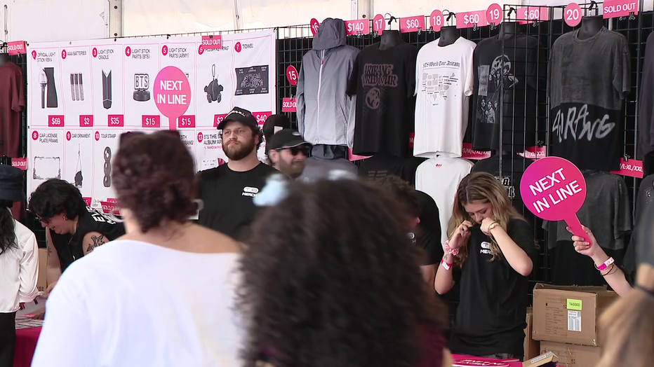 "I mean I'm excited with so many people from the ARMY," said Cecilia Medina, who traveled from Orlando for the show. "ARMY means that they follow, they love BTS and you know I do the same now so it's fun and I'm getting a lot of little souvenirs from the ARMY."