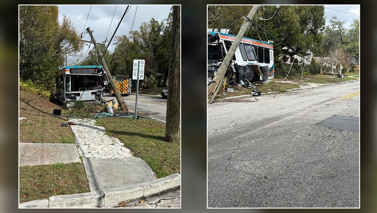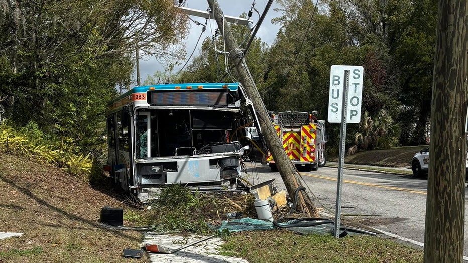 BROOKSVILLE, Fla. - The Hernando County Sheriff’s Office is investigating after a transit bus driver reportedly fell asleep at the wheel and drove off the road, hitting a utility pole Friday morning in Brooksville.