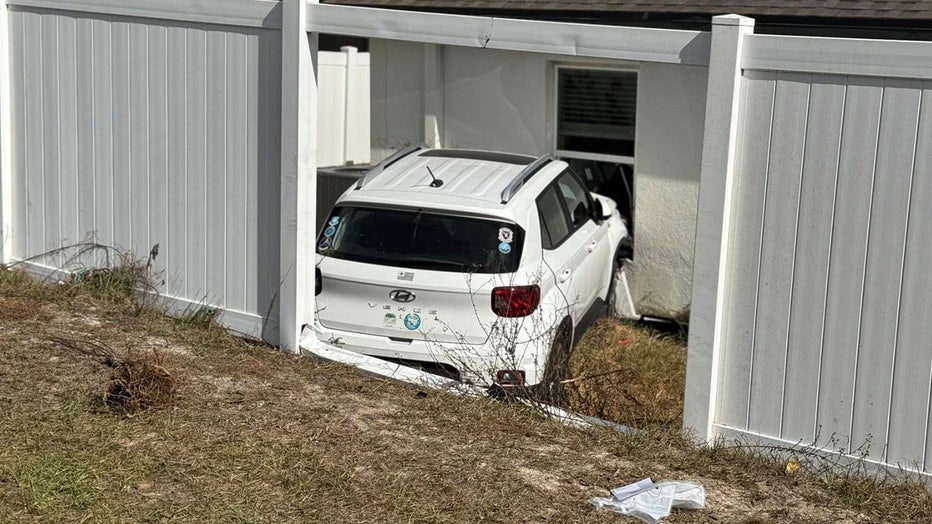 BROOKSVILLE, Fla. - A person inside a Brooksville home was hospitalized after a car crashed into the house on Monday, according to Hernando County Fire Rescue.