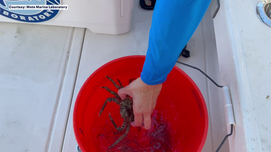 The crabs released came from stock maintained at Mote's Aquaculture Research Park in Sarasota.