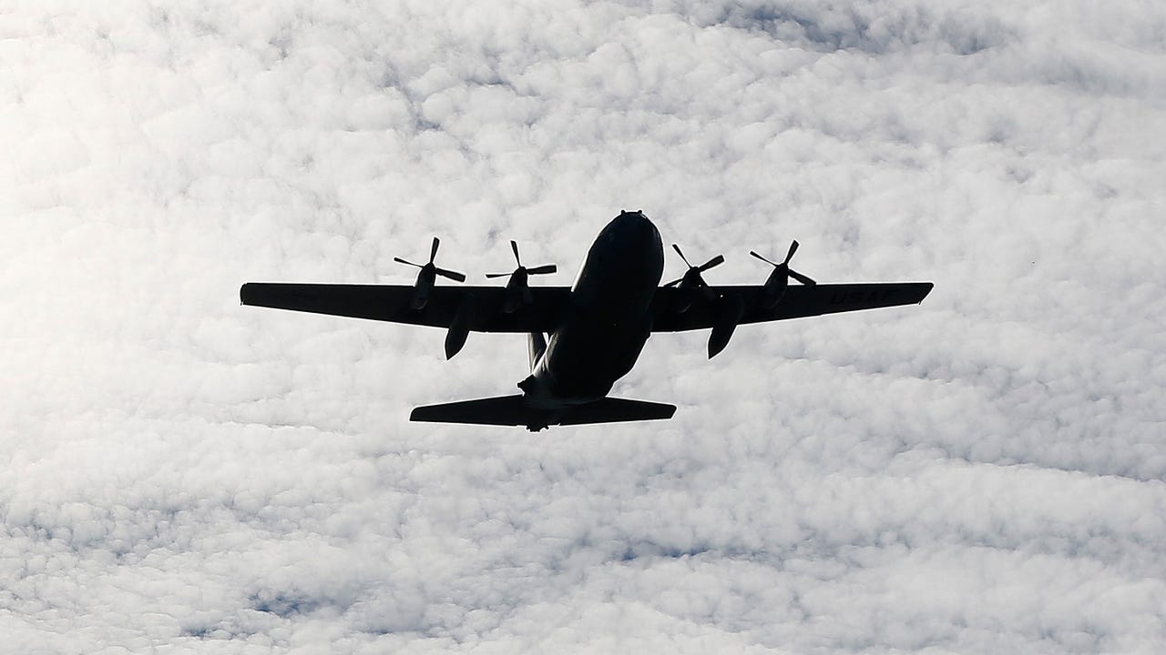 A file image shows a C-130 flyover on Nov. 2, 2019 in College Station, Texas. (Photo by Bob Levey/Getty Images)