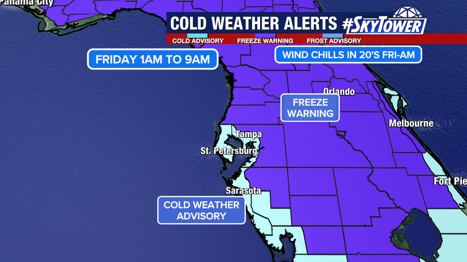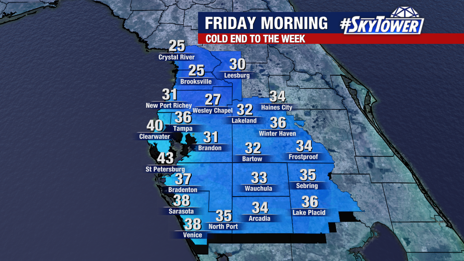 TAMPA - Cold shelters are opening on Thursday and Friday night across the Bay Area as freezing temperatures are expected in the coming days.