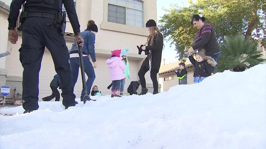 GILBERT, AZ. - Two-year-old Quinn Walker’s face lights up as she builds a snowman in her front yard.