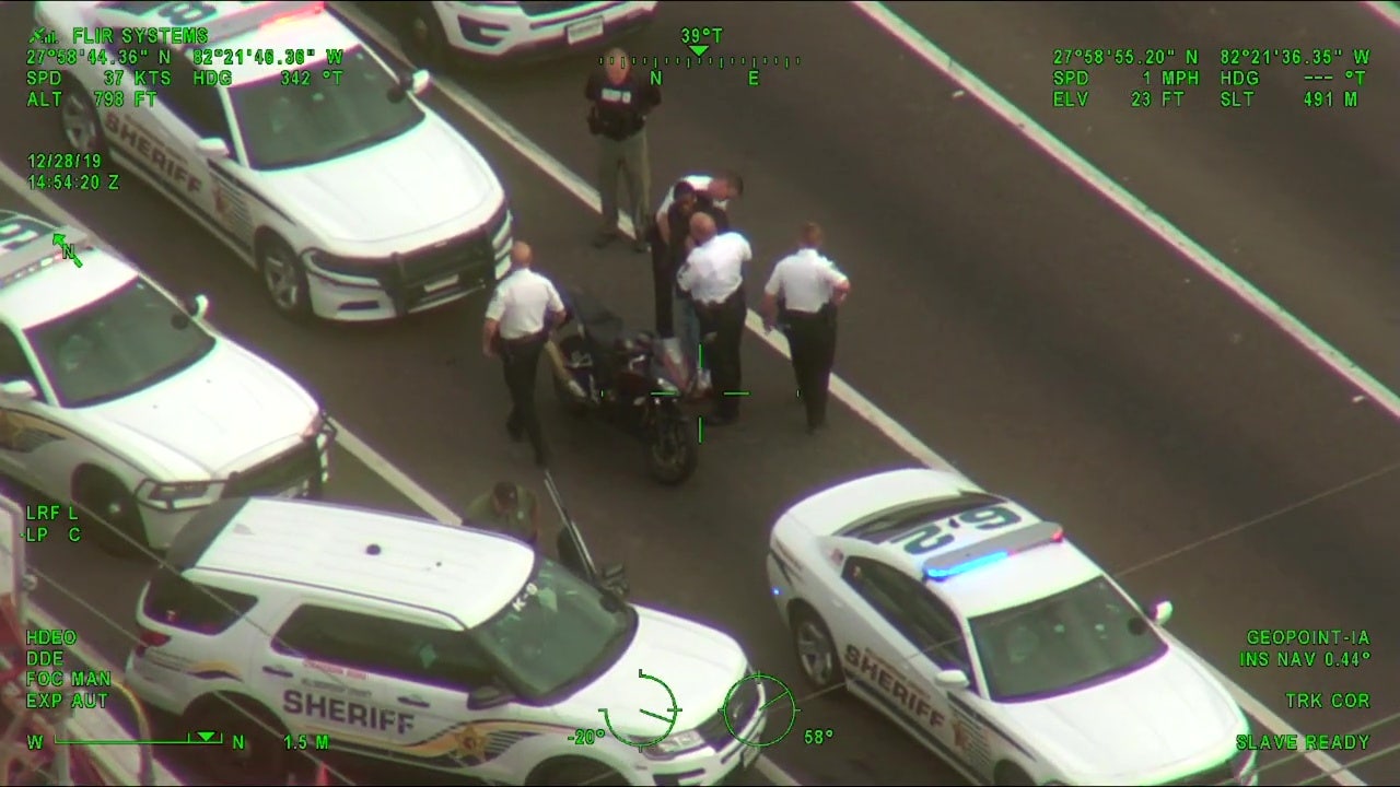 With aviation tracking the motorcycle, patrol and K9 units stopped it on Highway 301 just north of Dr. Martin Luther King Jr. Boulevard and determined that the driver was the robbery suspect, according to HCSO.
