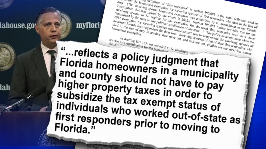 TAMPA, Fla. - Several years ago, Florida voters chose to give first responders in the state a property tax break without realizing there was a catch in which many people who need it the most are disqualified.