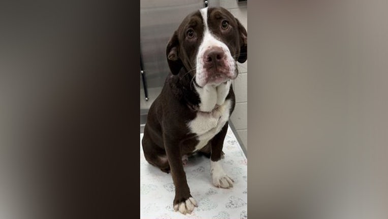 The dead dog was a brown male with white fur around its neck.