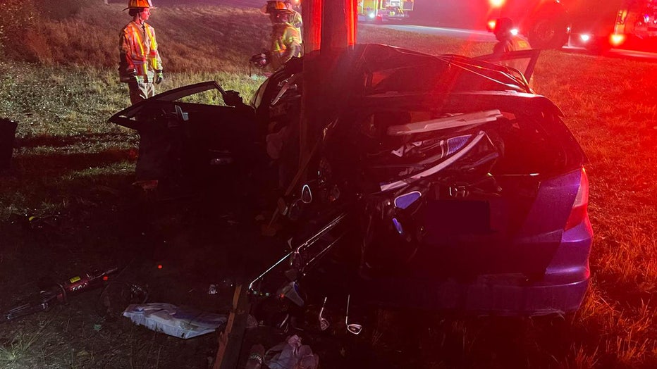 BROOKSVILLE, Fla. - One person is dead after a vehicle struck a power pole in Brooksville early Saturday morning, according to Hernando County Fire Rescue.