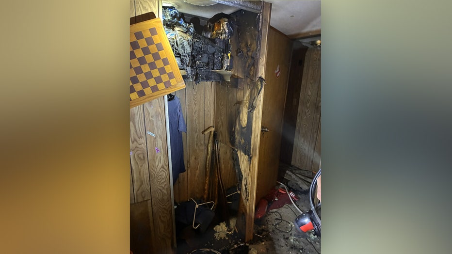 Firefighters removed smoldering items from a bedroom area and confirmed there was no extension of the fire inside the home.