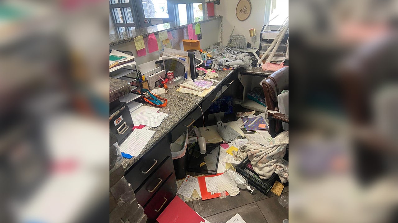 The blinds on the window were torn apart, papers were strewn about and there were even still images shared from security camera footage showing Titan taking free rein of the front desk area.