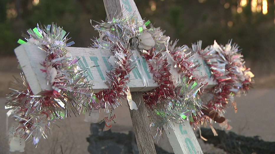 Eighteen months later, a vigil still stands near the road as a reminder of the life that was lost.