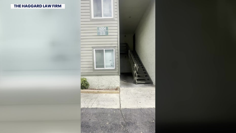 "Three unauthorized individuals came, banged on the door, demanded entry," Maegan Bridwell, of The Haggard Law Firm, said. "When they couldn't get inside, they continued to bang on the door, so loud, so much that other neighbors came outside to see what was going on."