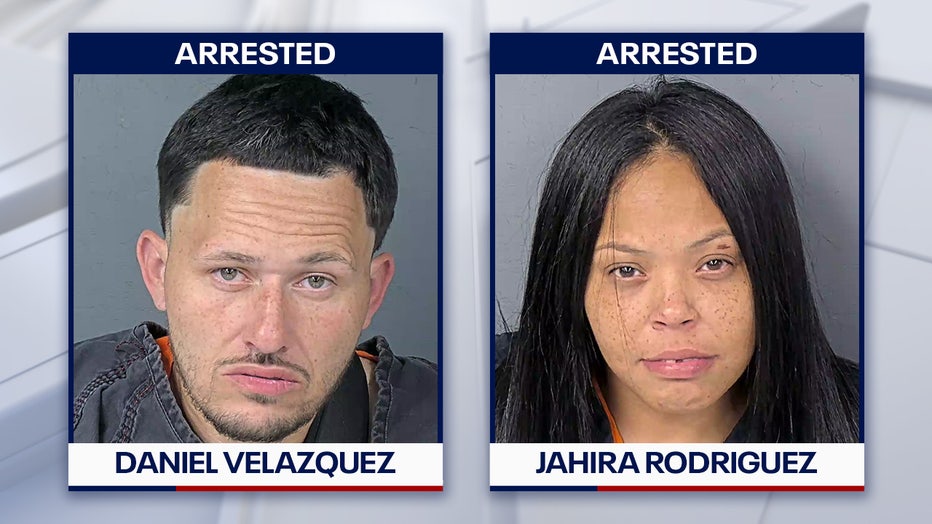 When deputies arrived, they said they saw Velazquez in the front yard, but he fled into the garage with his girlfriend, Jahira Rodriguez. After detectives breached the door to the garage, they found Velazquez inside the bathroom flushing narcotics down a toilet, and said he refused to comply with commands.