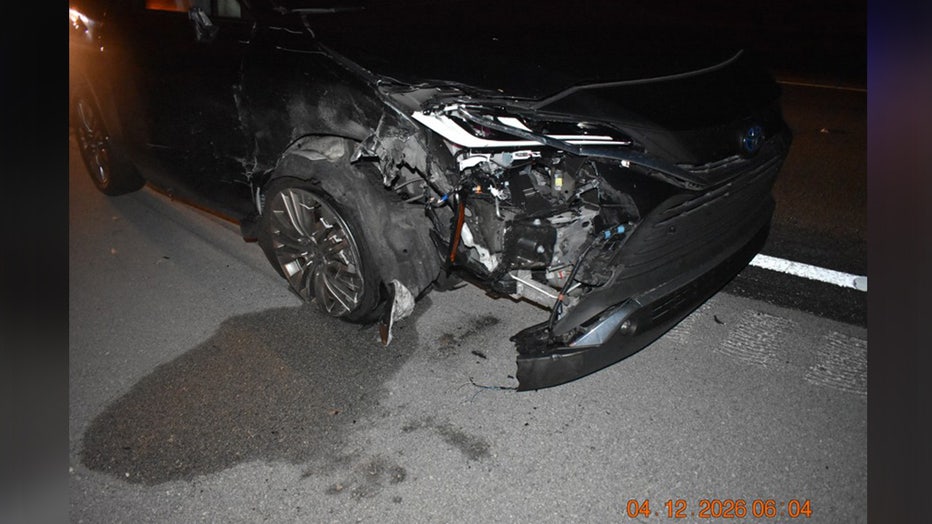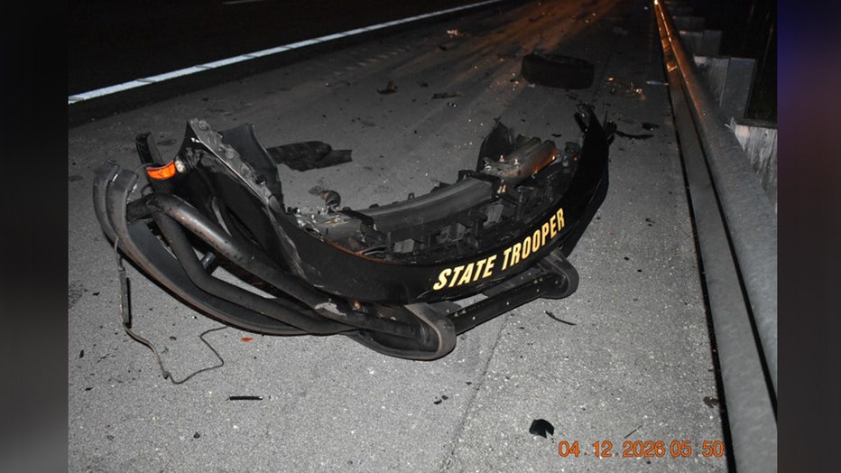 As the trooper was assisting the disabled motorist, a Sarasota man driving a Toyota Sedan collided with the left front side of the patrol vehicle. FHP said the force of the impact separated the left front tire and bumper from the patrol car.