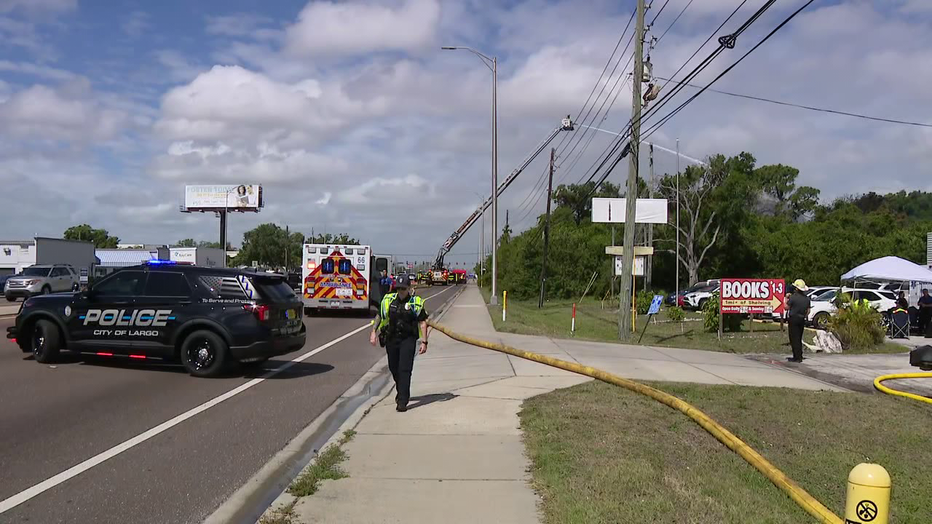 LARGO, Fla. - Fire crews are working to suppress a fire in Largo that temporarily closed some westbound lanes near Ulmerton Road.