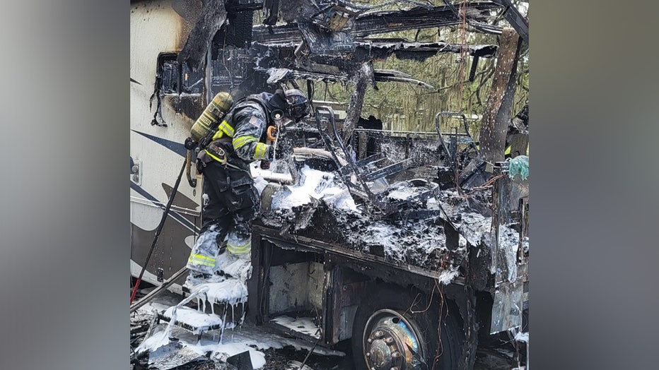 TAMPA - An Inverness RV was destroyed after Citrus County Fire Rescue says a mechanical failure in the engine compartment sparked a fire on Friday afternoon.