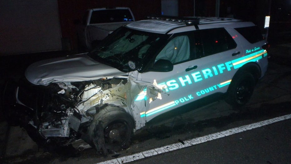The Hyundai, according to FHP, continued traveling recklessly and struck a Polk County Sheriff’s Office patrol vehicle after turning left at a red light.