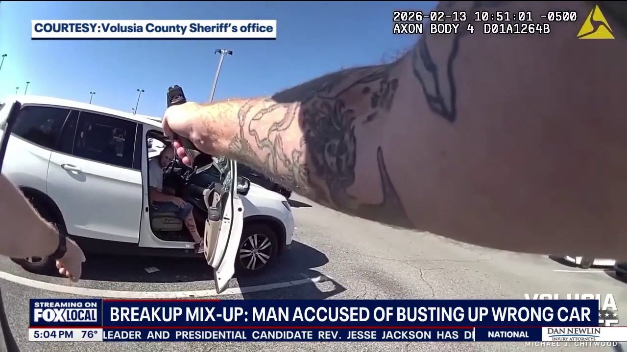 Florida man accused of smashing innocent woman's car with hammer in alleged revenge plot. (Source: Body Camera footage from Volusia County Sheriff's Office).