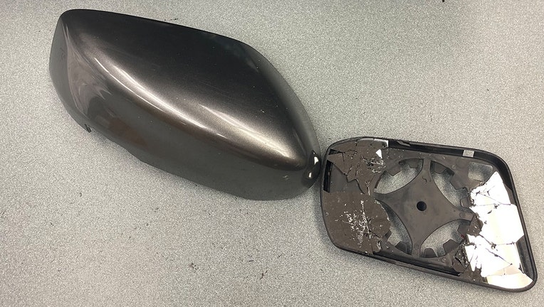 Passenger side mirror knocked off hit-and-run suspect vehicle in Pasco County. (Provided by FHP)