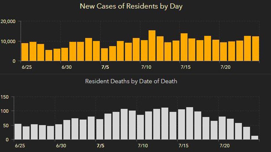 The 173 new deaths reported Thursday was the largest number of daily new deaths since the pandemic began. The previous high was 156 deaths added July 16.