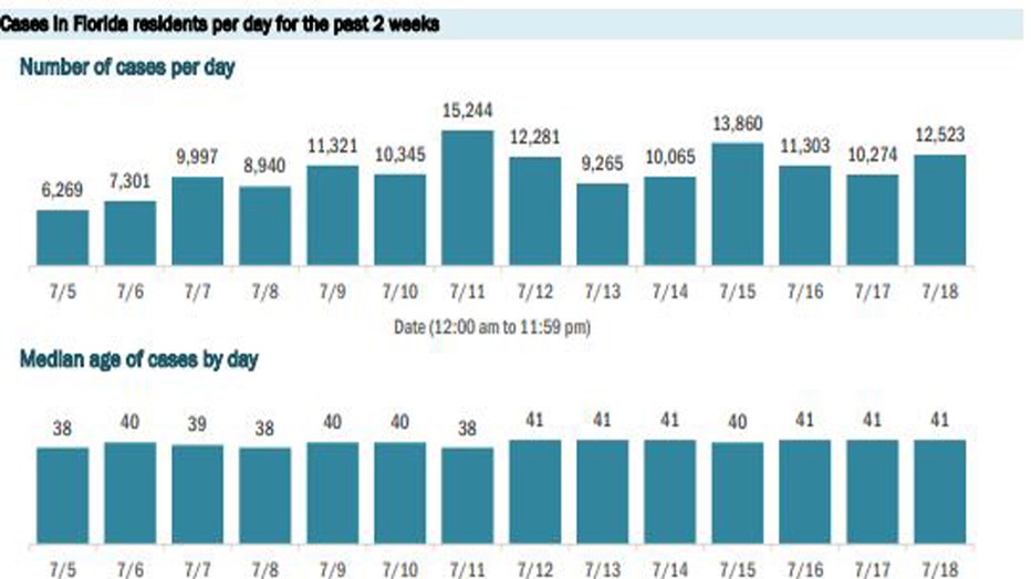 Gov. Ron DeSantis says the recent case increases are largely due to testing of "high-risk" individuals like farmworkers in the state's rural counties, prisoners, and residents of long-term care facilities, though he has more recently noted the "erosion" in social distancing, especially among the younger demographics in social setting. That prompted him to order all bars to cease serving alcohol.