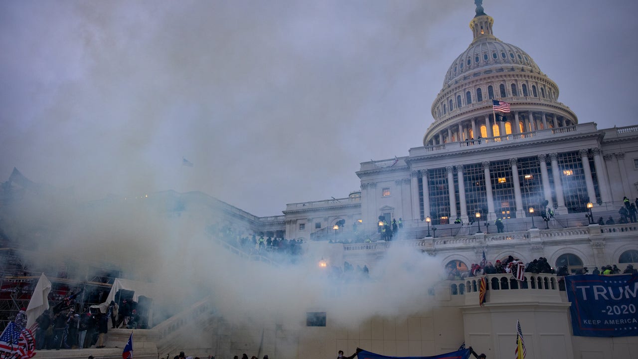 Tear gas is fired at supporters of President Trump who stormed the United States Capitol building. (Photo by Evelyn Hockstein/For The Washington Post via Getty Images)