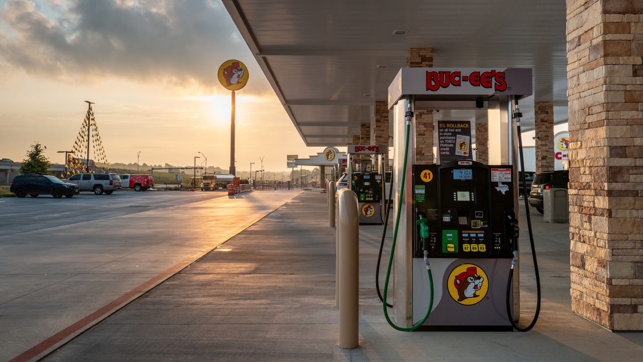 FILE - A gas pump station at the Buc-ees convenience on June 12, 2024 in Luling, Texas. (Photo by Brandon Bell/Getty Images)