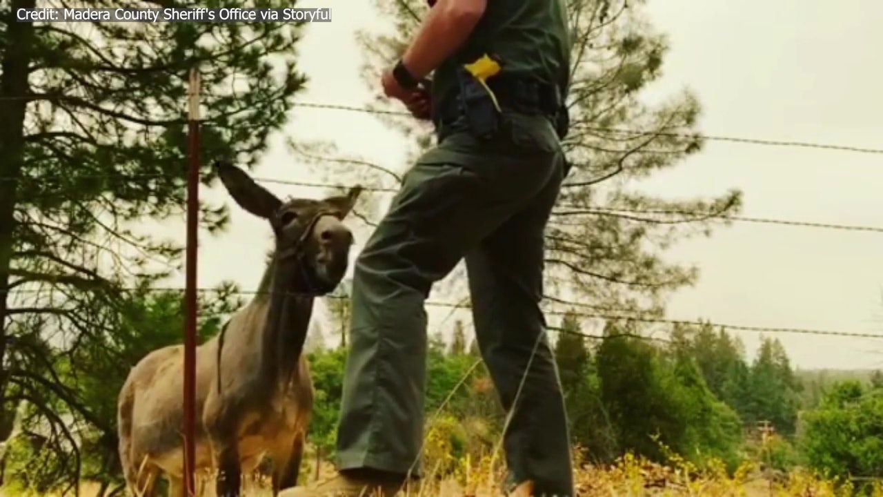 MADERA, Calif. - A donkey left alone in a field during Creek Fire evacuations was set to be reunited with her owners on Saturday, September 12, the Madera County Sheriff’s Office (MCSO) said.
