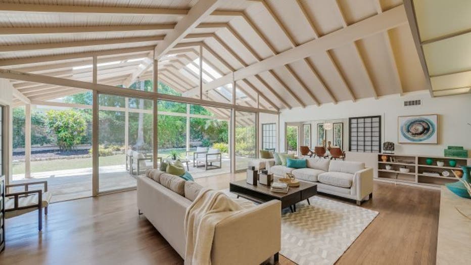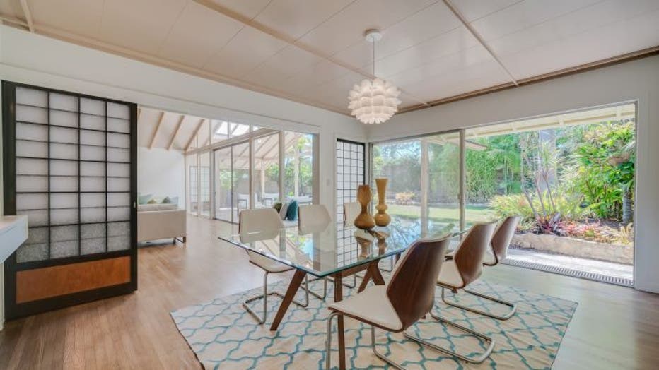 Inside, the home features glass walls, clerestory windows and high-beamed ceilings, according to the listing. Sliding shoji screens and built-ins help differentiate areas.